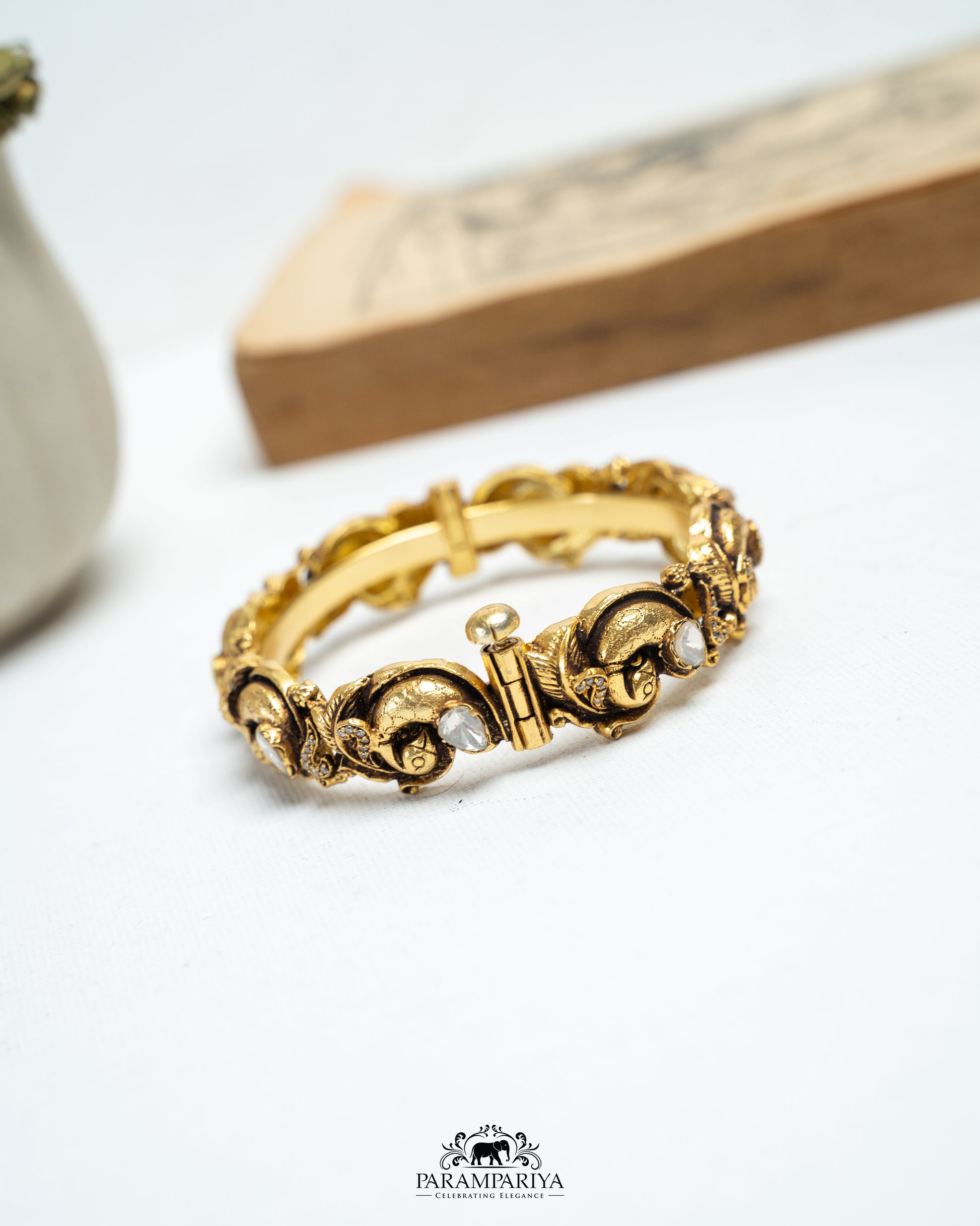 Pure silver micron gold plated temple style bangles with moissanite stones!!